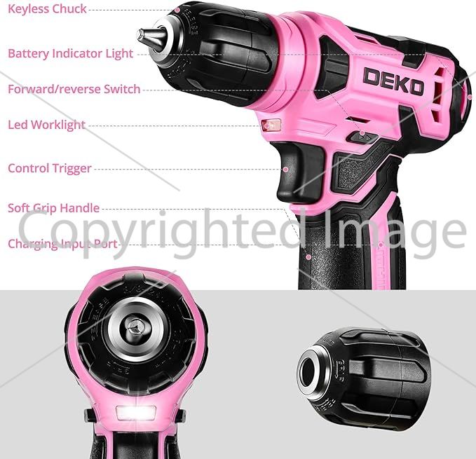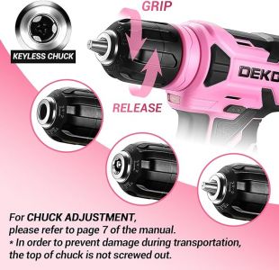 In addition to the screwdriver, the package includes two rechargeable batteries, a charger, and a set of bits. The DEKOPRO is ready to use right out of the box, making it a convenient choice for DIY projects or professional use. The DEKOPRO 8V Cordless Drill is a great choice for both home hobbyists and professionals who appreciate the quality and reliability of this tool. It comes with a 3/8" keyless chuck, making it easy to use and adjust.